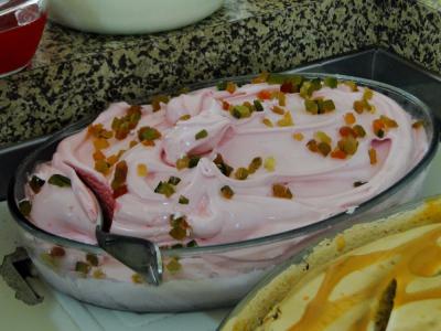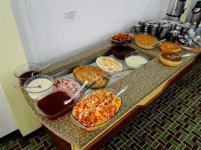 Oferecemos um buffet de pratos quentes com diversos tipos de comida